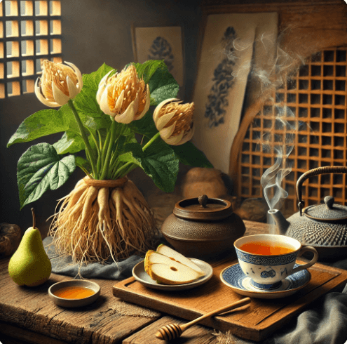 도라지는 기관지 건강에 탁월한 효과가 있어요. 사포닌 성분이 풍부하게 함유되어 있어 가래를 삭혀주고, 염증을 줄이는 데 도움을 줍니다. 배 역시 기관지 점막을 보호하는 역할을 해 목이 쉽게 붓거나 아픈 분들에게 좋아요.